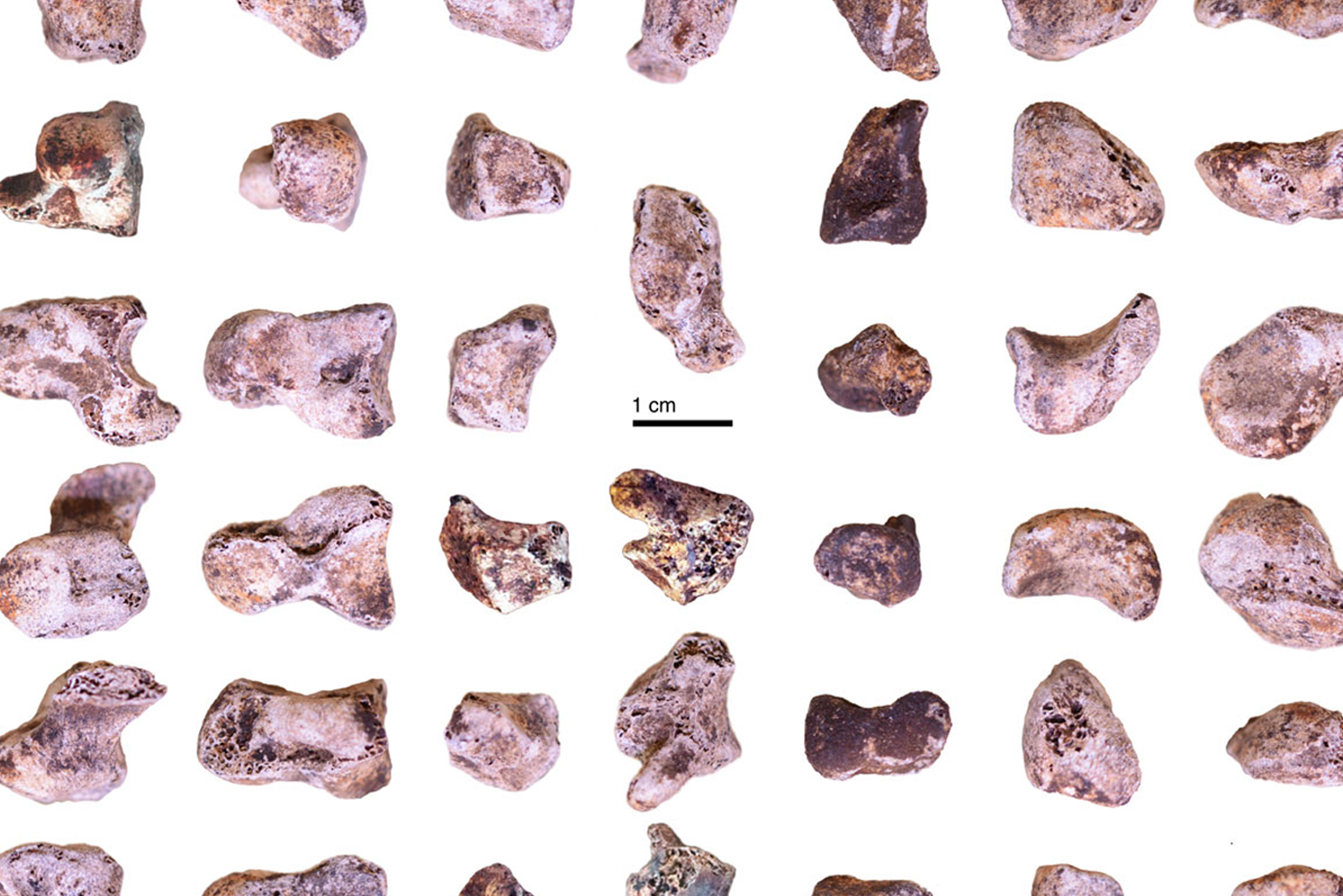 Frammenti delle ossa della mano di Homo naledi, caratterizzato dalla coesistenza di tratti antichi e moderni. Crediti: Nature Comunications/Wikimedia Commons. Licenza: CC BY 4.0