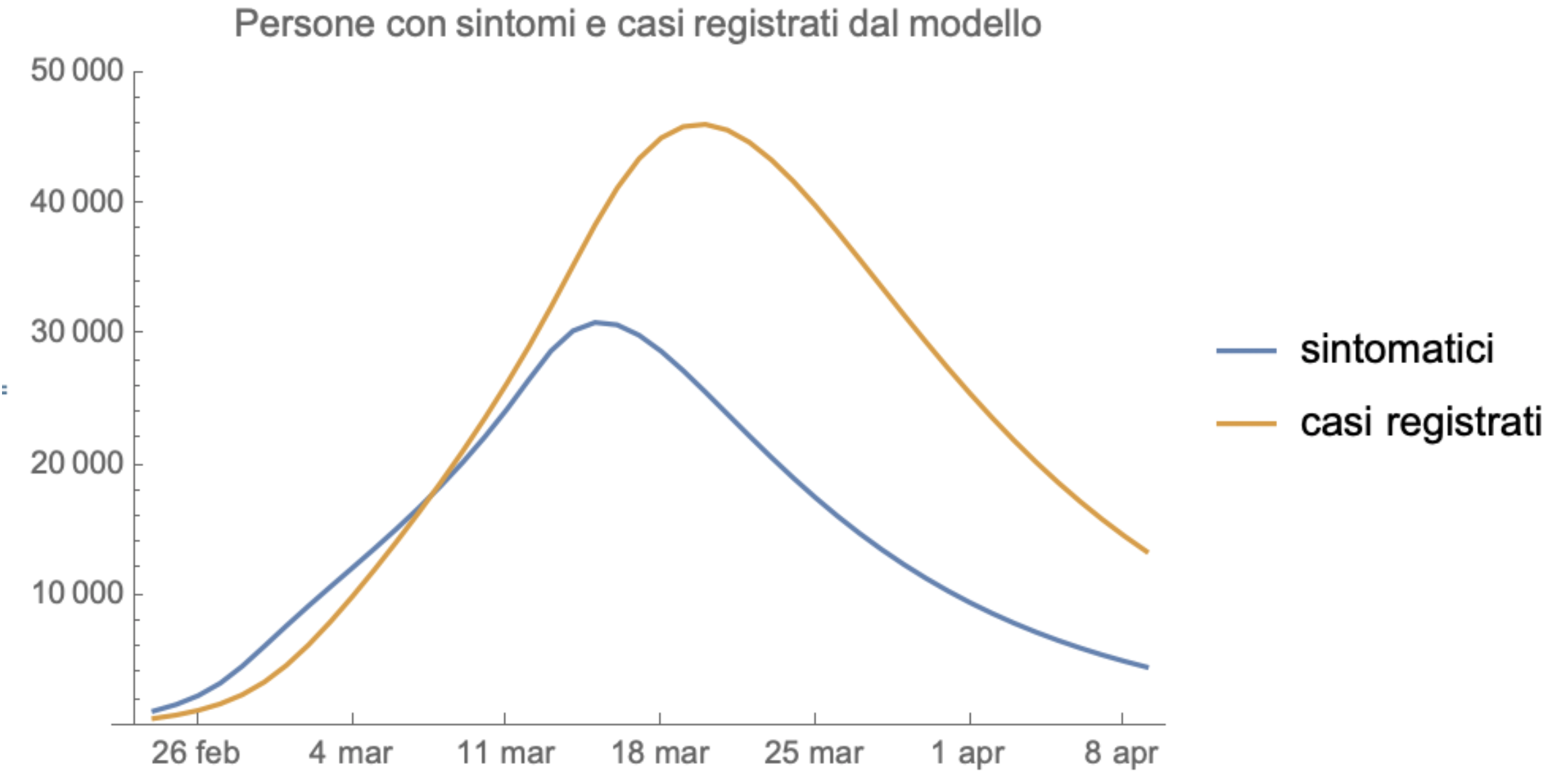 Figura 4. Persone con sintomi e casi registrati dal modello.