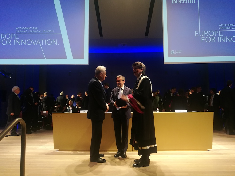 All'apertura dell'Anno accademico 2018-2019 dell'Università Bocconi, Mario Monti, dopo i saluti di rito e i riferimenti all'Università, fa una appassionata difesa della ricerca di base, che non può essere disgiunta dalla ricerca applicata; entra poi nel vivo del dibattito politico sottolineando la centralità dell'Europa per la ricerca e l'innovazione del continente e di ogni singolo paese. Invitando (nella conclusione a braccio) a difendere "con fiducia e con coraggio" l'ancoramento italiano all'Europa, definendo "ridicoli" e "nostalgici" i tentativi di gestire in isolamento l'innovazione e l'economia in un mondo ormai globalizzato. L'esempio dell'European Research Council, a cui applicano anche paesi extraeuropei sapendo di non poter ambire a risorse ma perché riconoscono l'autorevolezza del suo sistema di valutazione, indica che questa eccellenza "è il solo modo per conseguire una vera sovranità nazionale". (l.c.)