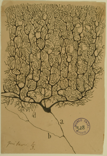 Se Émile Gallé è un botanico prestato all’arte, Santiago Ramón y Cajal è un artista che ha applicato il suo talento artistico alle scienze mediche. Il vincitore del premio Nobel per la medicina nel 1906 per la scoperta e la descrizione delle sinapsi tra neuroni, fa tesoro della sua maestria nel disegno per l’attività di anatomico e istologo. Poiché non gli è possibile documentare fotograficamente le immagini che osserva al microscopio, le trasferisce su carta tratteggiandole a matita e rifinendole a china.