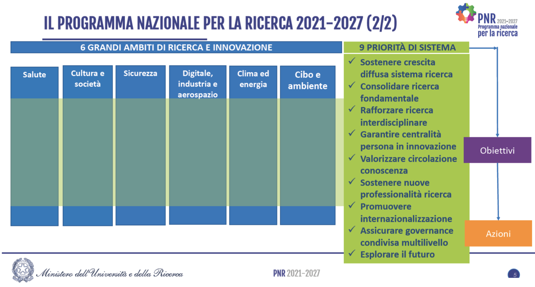 Di seguito riportiamo un dettaglio del nuovo programma nazionale per la ricerca 2021-2027 che ha identificato delle priorità di sistema, molte delle quali sono cruciali per consentire la mobilità e aumentare la nostra attrattività.