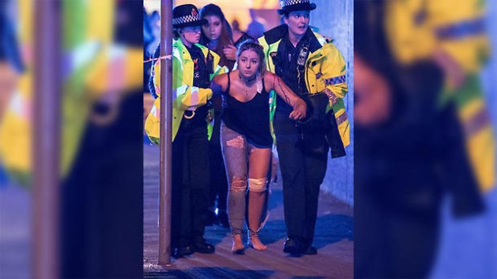 Persone ferite all'esterno della Victoria Station a Manchester e sulle scale che conducono alla Manchester Arena subito dopo l'attacco suicida avvenuto al termine del concerto di Ariana Grande il 22 maggio scorso. Credit: Joel Goodman/LNP.