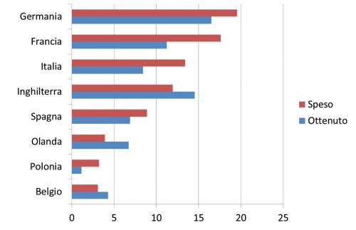 Fig.1 - Percentuale del budget europeo contribuita e finanziamento ottenuta