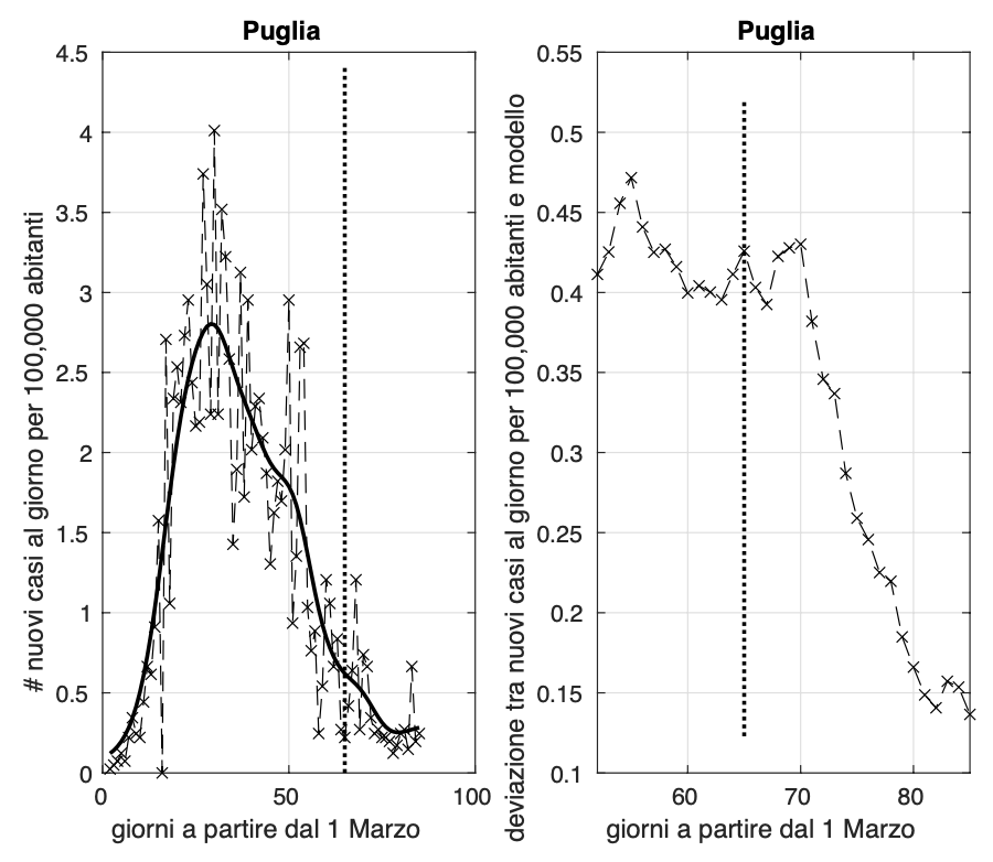 Gli incrementi dell'incidenza avvenuti negli ultimi due giorni in Puglia e Basilicata sembra siano stati sporadici. Comunque la situazione va monitorata nei prossimi giorni.