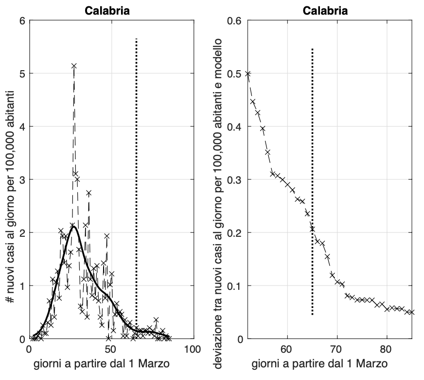 Sembra aumentare la velocià con cui va a zero l'incidenza in Calabria e Umbria, dove negli ultimi dieci giorni circa c'è un alternanza giornaliera di valori nulli.
