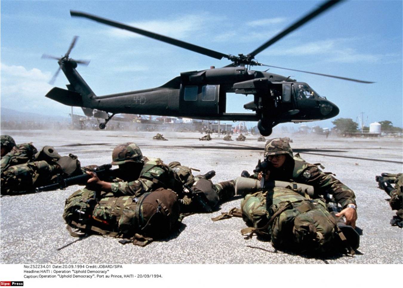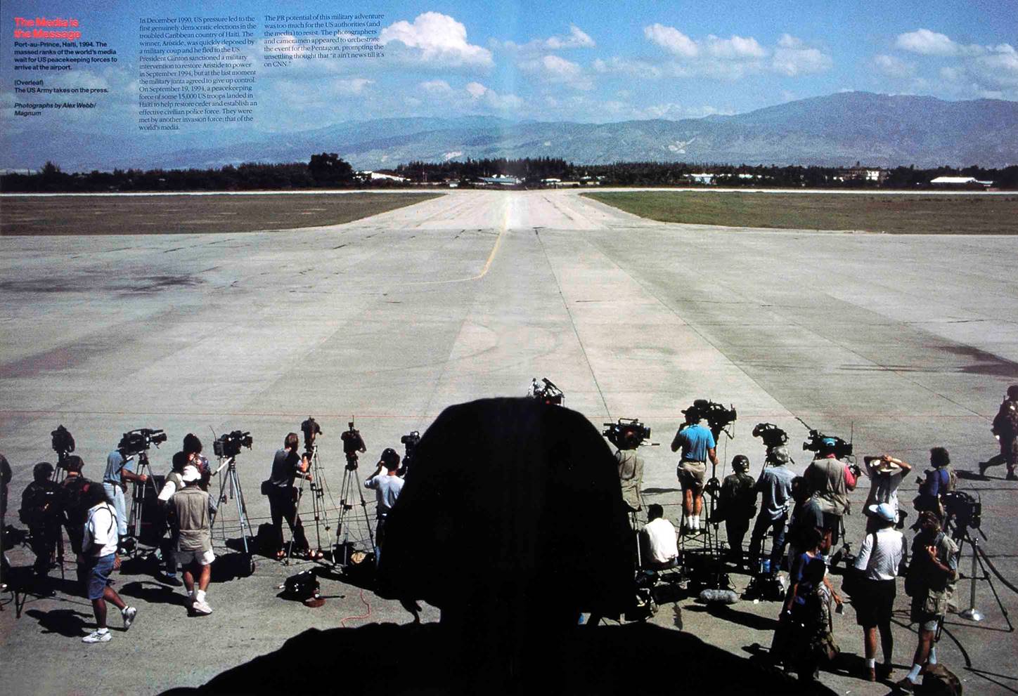 Il contesto storico: deposto il dittatore Duvalier, ad Haiti si erano tenute nel 1991 nuove elezioni con la vittoria di Aristide, che però in breve venne deposto dai militari. Dopo forti pressioni internazionali gli Stati Uniti decisero di intervenire con la forza ad Haiti per ristabilire il presidente regolarmente eletto. I media vennero informati con largo anticipo dell’arrivo dei marines e li attesero all’aeroporto di Port Au Prince.
