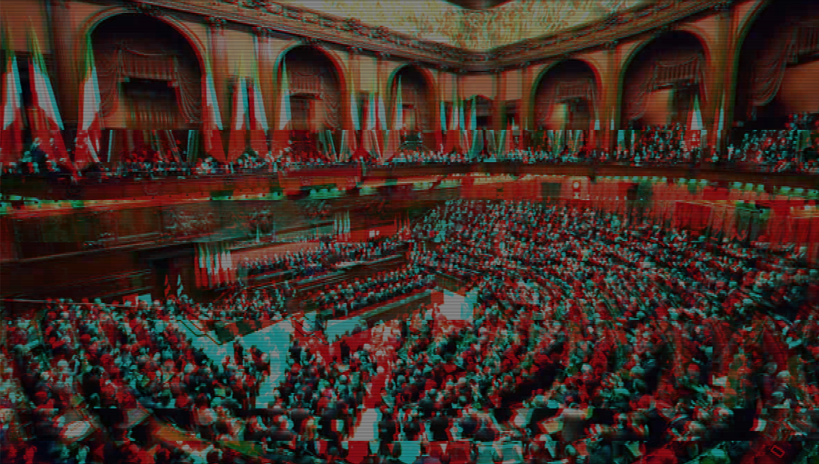 La Camera dei deputati in occasione della cerimonia di giuramento del Presidente della Repubblica Sergio Mattarella il 3 febbraio 2015. Credit: Presidenza della Repubblica Italiana. Licenza: Marchio di pubblico dominio 1.0. Glitched by Scienza in rete.