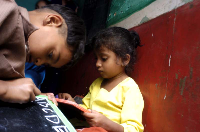 Children Reading Pratham Books and Akshara. Credit: Photo by Ryan Lobo - Pratham Books - Licenza: CC BY-SA 2.0.