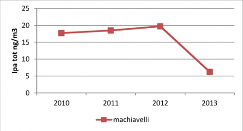 Ipa totali misurati nella stazione di via Machiavelli (Tamburi) tra il 2010-2013 (dati Arpa Puglia)