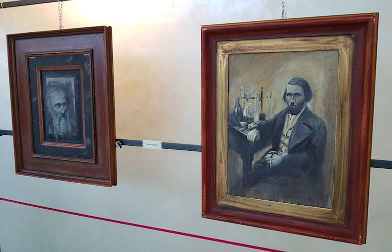 Francesco Selmi nell'arte: due ritratti del chimico italiano dipinti da Luca Migliori, esposti alla mostra commemorativa "I volti di Selmi. Immagini di Francesco Selmi reinterpretate" tenutasi a Vignola a maggio 2018. Foto di  Fabiana Fraulini