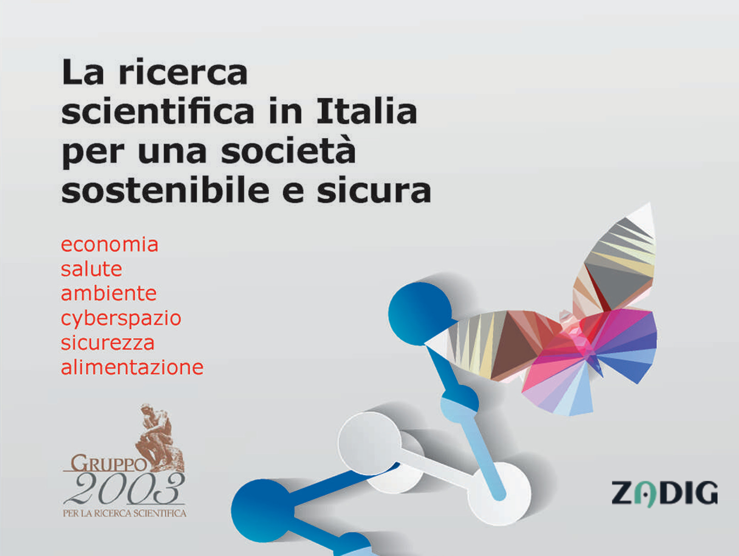 Il libro "La ricerca scientifica in Italia per una società sostenibile e sicura", redatto dal Gruppo 2003 per la ricerca e pubblicato da Zadig, verrà presentato il 20 marzo a Roma in occasione del convegno annuale del Gruppo 2003 presso l'Accademia dei Lincei. Nel libro vengono declinati i temi di sostenibilità e sicurezza dal punto di vista dell'economia, della salute, dell'ambiente, del cyberspazio, della sicurezza e dell'alimentazione. Qui il programma della giornata. Per partecipare all'evento è necessario mandare un'email a questo indirizzo.