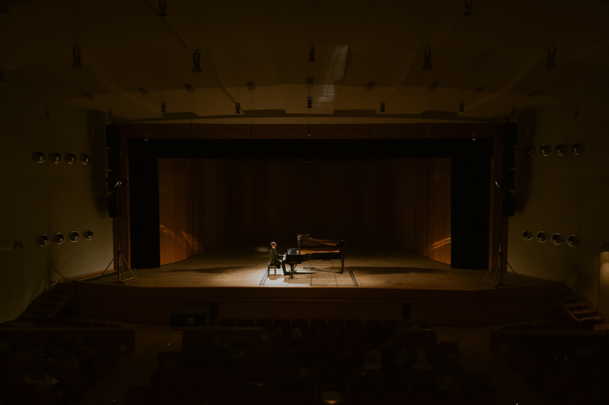 Nell'immagine: il musicista Giovanni Nesi durante un suo recital per la sola mano sinistra presso il PalaCultura Antonello a Messina; foto di Francesco Algeri