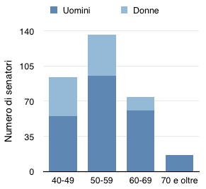 Al Senato un atteso innalzamento dell'età media, anche se non sono molti i senatori ultra settantenni. Decisamente meno le donne.