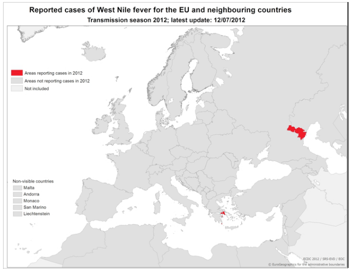 Nel 2012 i primi casi di infezione in Europa sono riportati in Grecia e Russia (2 e 5 casi al 12 luglio 2012, Figura1)