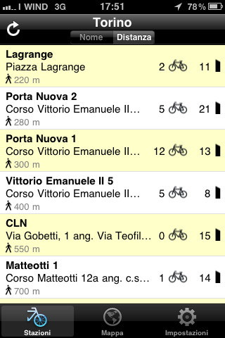 Per tutte le città, tranne Milano, l'app fornisce i dati relativi alla disponibilità di biciclette in ogni stazione. Nelle impostazioni dell'app è possibile abilitare l'aggiornamento automatico dei dati a intervalli di tempo regolari (attenzione all'uso di batteria e traffico dati).