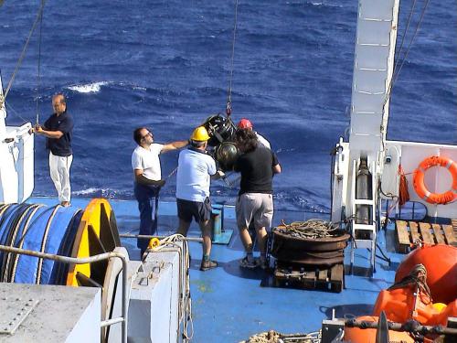 profondità, nel mar Ionio, una serie di strumenti per la misura delle correnti