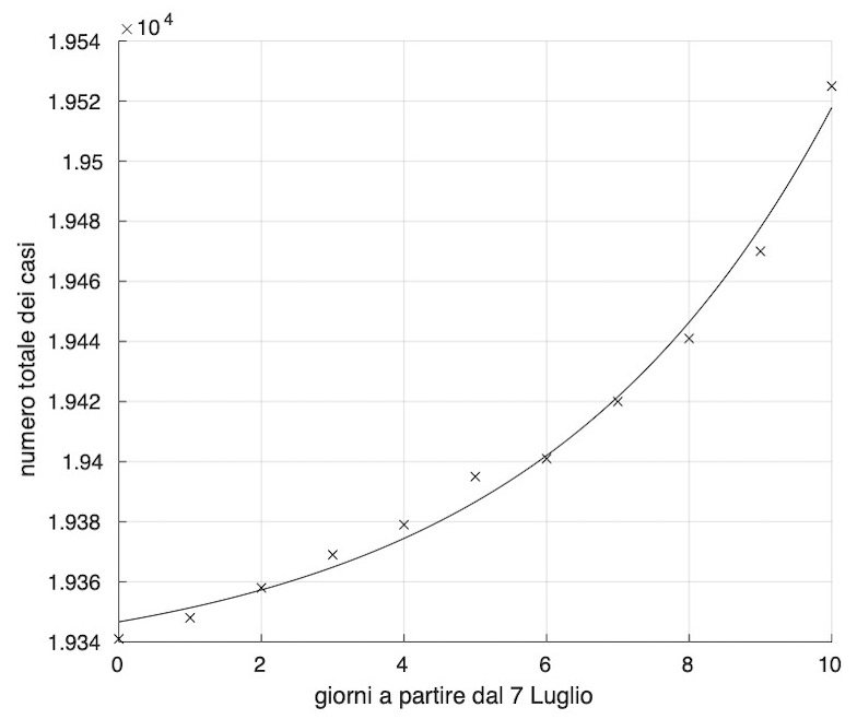 Diffusione dell'epidemia in fase di crescita esponenziale con tempo di raddoppio uguale a circa 3 giorni.Veneto
