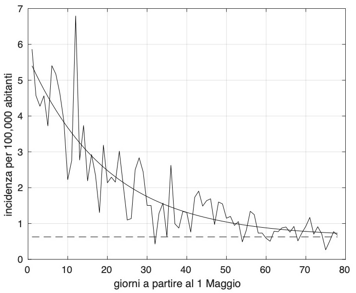 La curva dell’incidenza “media” nelle regioni del primo e secondo gruppo mostra che il valore limite al quale converge è maggiore di zero.