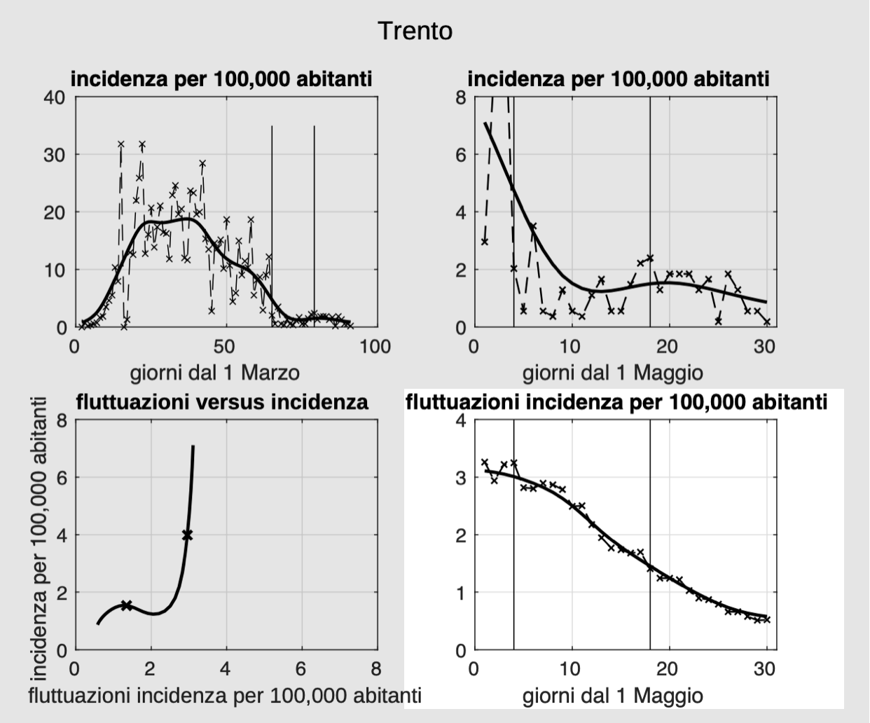 Si noti che dopo circa 7-10 giorni dal primo rilascio di lockdown del 4 maggio nella provincia di Trento si è registrato un aumento della velocità con cui va a zero l’incidenza.