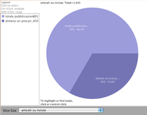 Cliccando nel campo sotto il grafico si può scegliere il tipo di pubblicazioni (articoli su riviste, atti congressuali, rapporti tecnici, monografie, totale). Il grafico mostra la percentuale di lavoratori precari dell'Iss sul totale degli autori del tipo di pubblicazioni scelto.