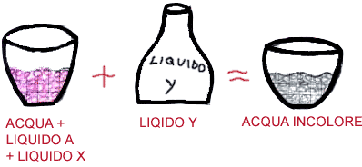 | Ora invece prende il bicchiere con l’acqua colorata e ci versa il liquido Y: il colore sparisce. | ![]() |