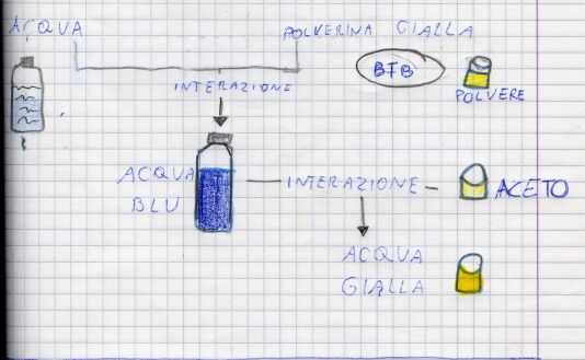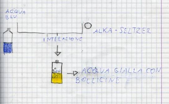 bicchiere con acqua e btb (blu) la maestra ha chiesto a Luca M