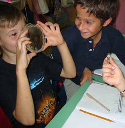 Cerchiamo di distinguere le varie parti, più evidenti nel lilium. Inseriamo in un barattolo con una grossa lente come coperchio il pistillo, osserviamo la capocchia (stimma) e il rigonfiamento in basso (ovario).