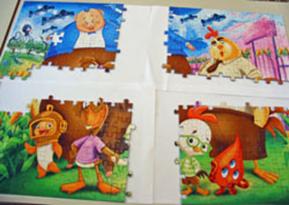 Occorre partire da un puzzle montato da 250 pezzi, tenuto tra due fogli di cartone, capovolgerlo e dividerlo in cinque parti. I cinque settori possono avere anche forme complesse, il cui contorno viene ricalcato su un foglio A3 o A4. Si contrassegnano i pezzi adiacenti, sul retro, con cinque colori diversi, quindi si assegna a ciascun gruppo di bambini il “sottosistema” smontato dei pezzi di un dato colore e il foglio con il profilo della loro area. Ogni gruppo costruirà il proprio sottosistema entro tale profilo, avendo a disposizione la fotocopia dell’intero soggetto, quindi si monterà il tutto sul tavolo grande.